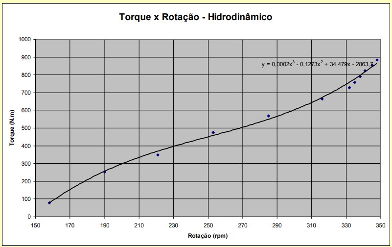 Como se pode notar, no freio hidrodinâmico o torque de frenagem só aumenta consideravelmente com o acréscimo de rotação.